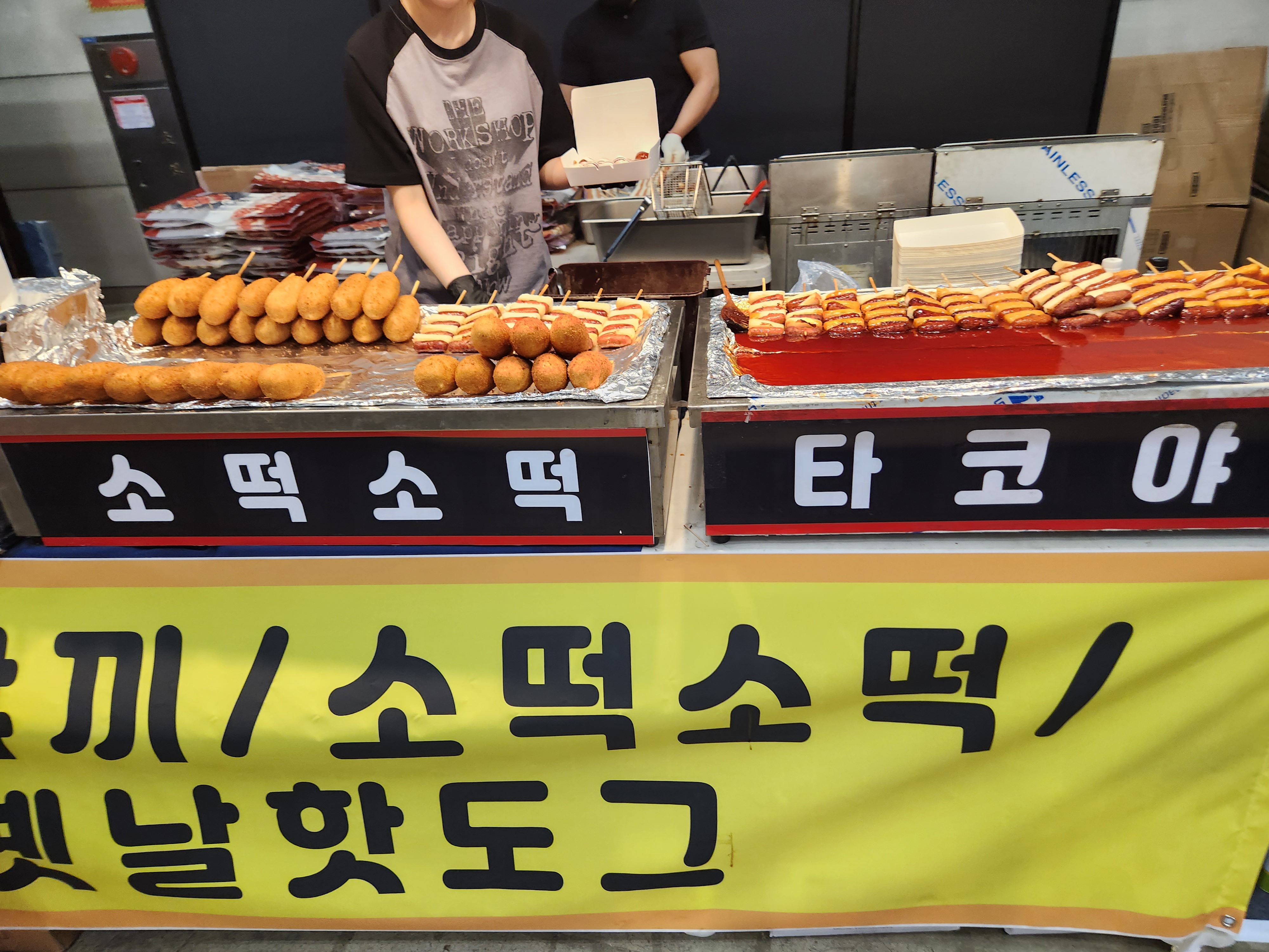 음식 종류가 많지는 않고요, 간단한 간식거리입니다. 소떡, 타코야끼, 핫도그, 닭강정 등등 판매하고 있습니다.