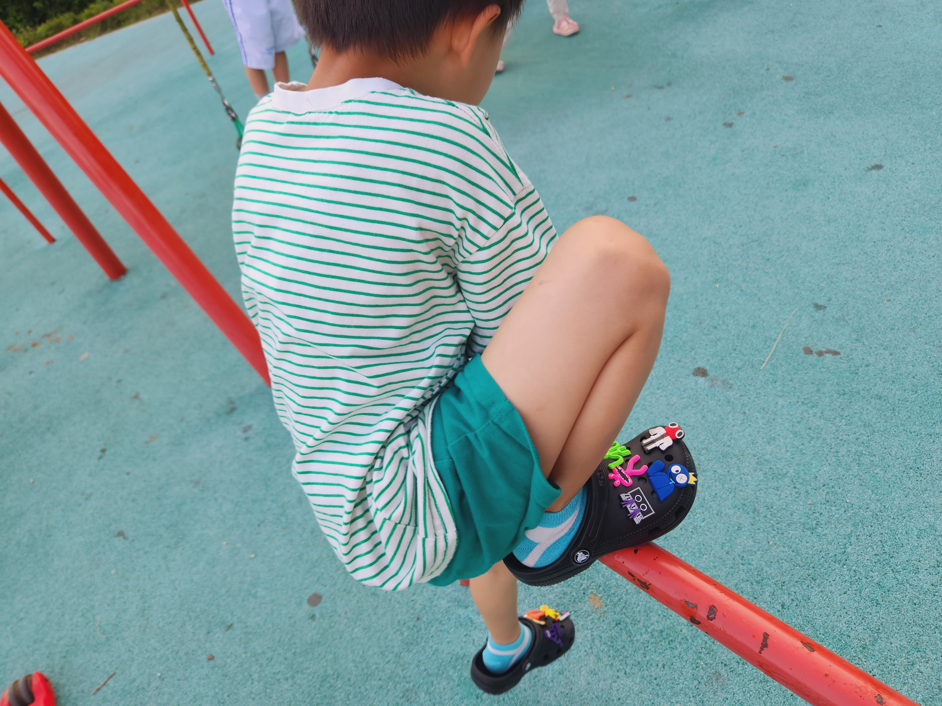 크록스 신발을 꽉 채우는 지비츠입니다. 아이가 너무 좋아했답니다. 그냥 크록스만 주면 안 신었는데, 지비츠로 꾸며주니, 바로 신어주는 아들 녀석입니다. 아이가 신은 크록스 사이즈는 C12입니다.