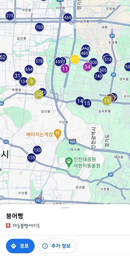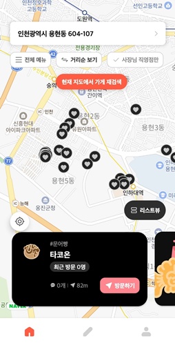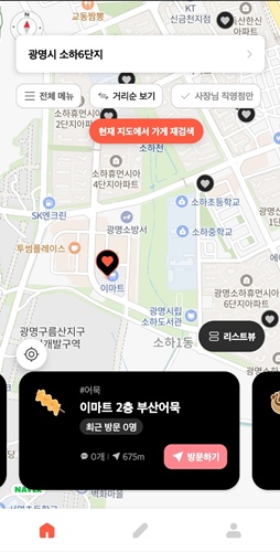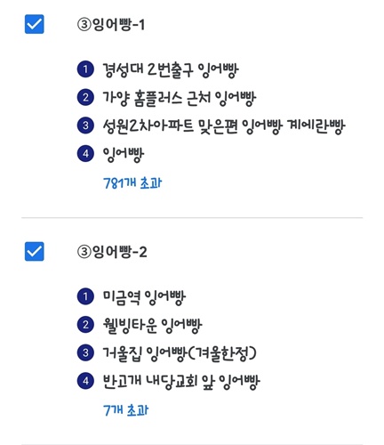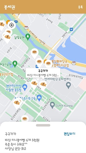 처음에는 사용자의 위치 기반으로 붕어빵 파는 곳이 나옵니다. 하지만 다른 지역에 있는 곳들도 조회할 수 있습니다. 사용해 보니 정말 많은 붕어빵 판매점들이 있었습니다.