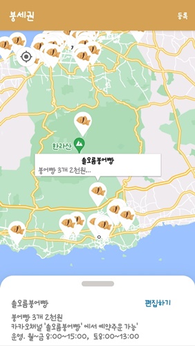 붕세권에서는 제주도에 있는 붕어빵 판매점들도 조회할 수 있습니다. 제주도에도 붕어빵 파는 곳이 많은것 같습니다.