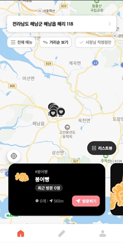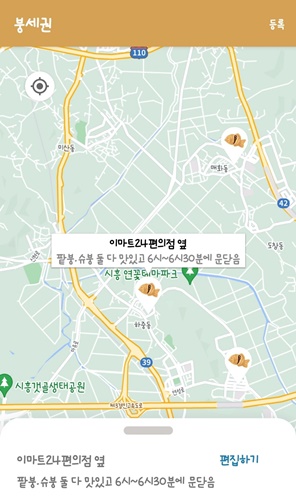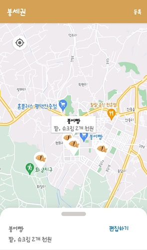 붕어빵 파는 곳을 찾을 수 있는 두번째 어플은 붕세권이라는 어플입니다. 붕세권도 사용자가 등록하여 만들어지는 어플입니다.