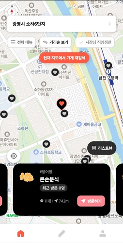 붕어빵 가게 방문 인증도 할 수 있고, 리뷰도 쓸 수 있습니다. 단, 가게 근처에서만 방문 인증을 할 수 있습니다. 정말 찐입니다. 거짓으로는 리뷰를 쓸 수가 없겠습니다.