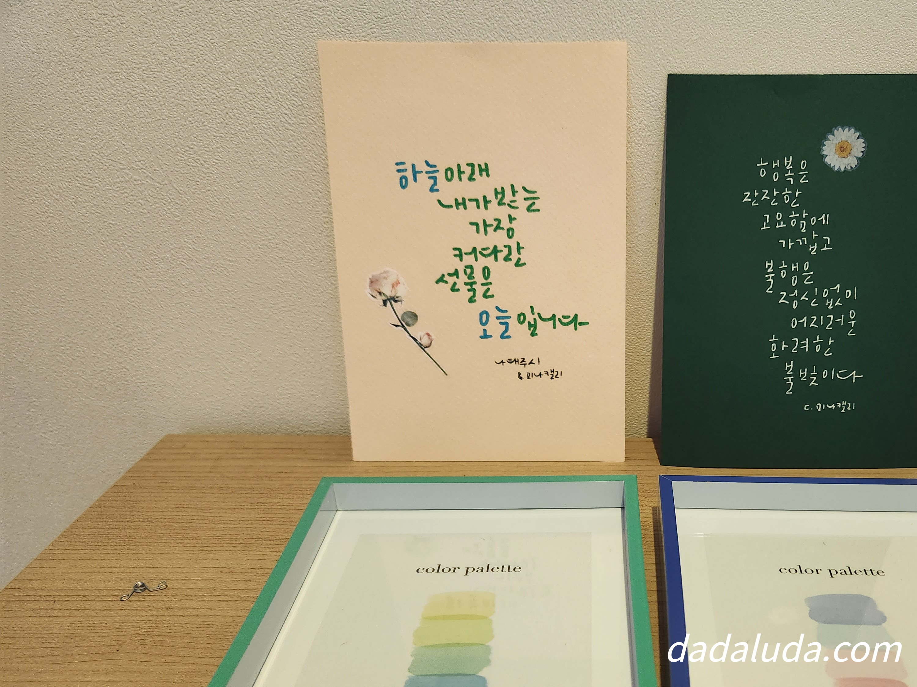 다이소 액자 테두리 색과 엽서 색을 좀 맞춰봤습니다.