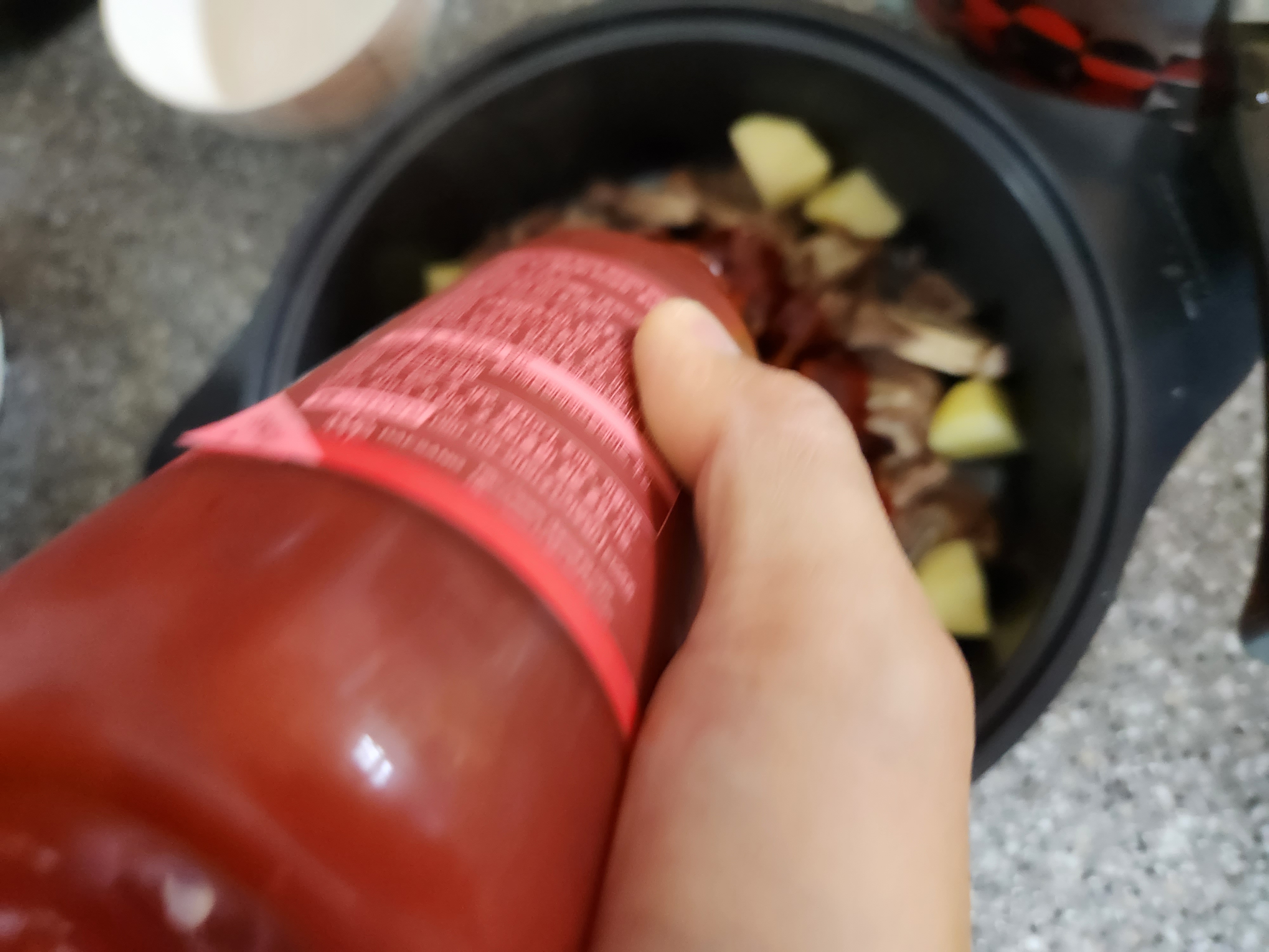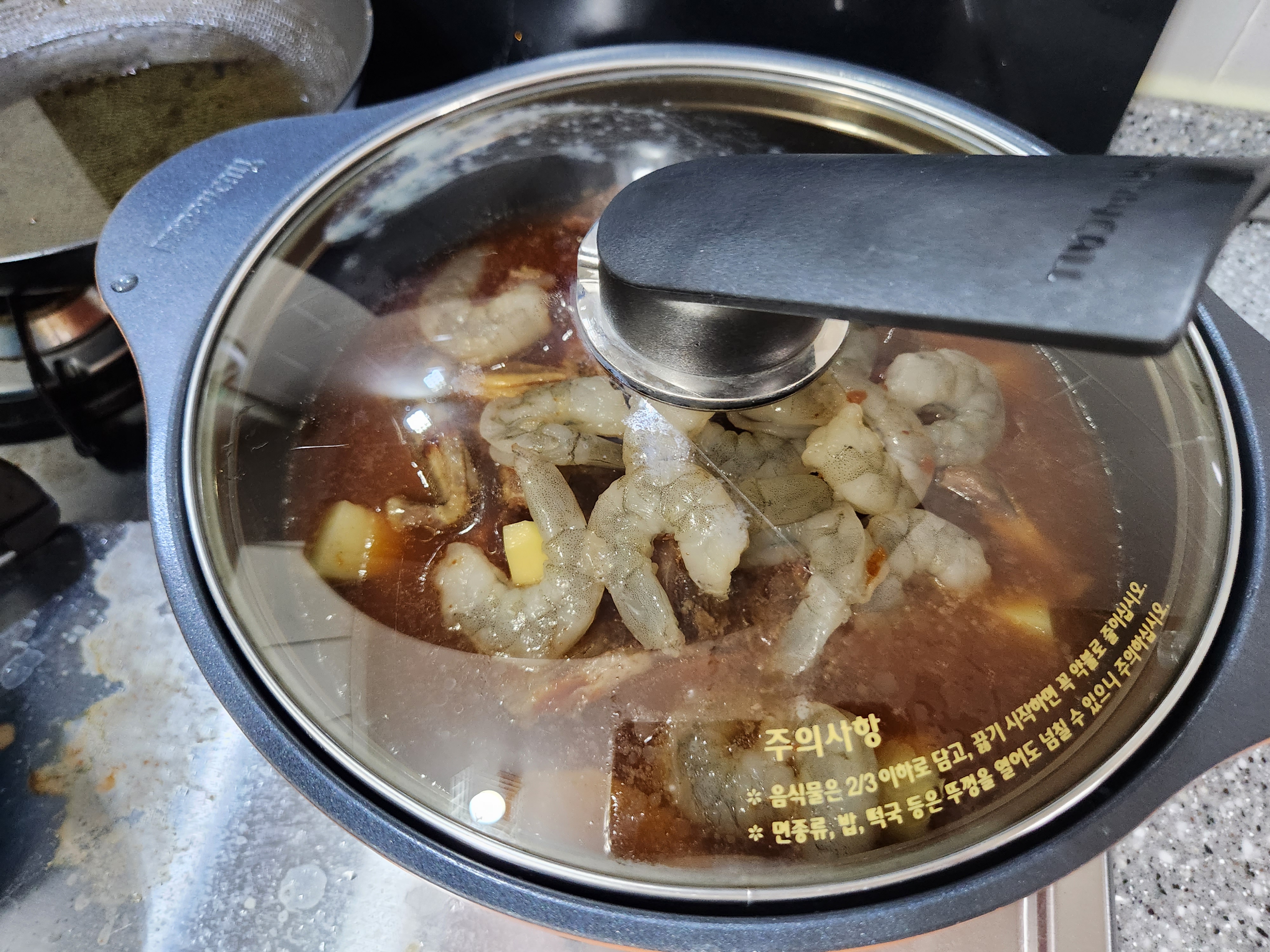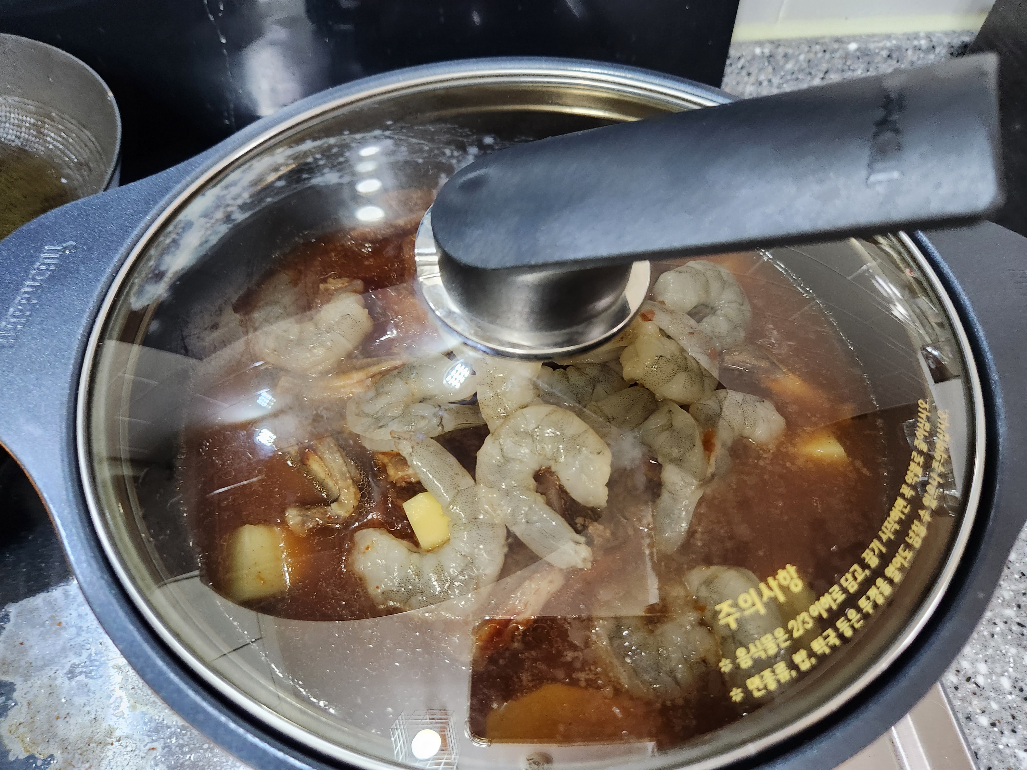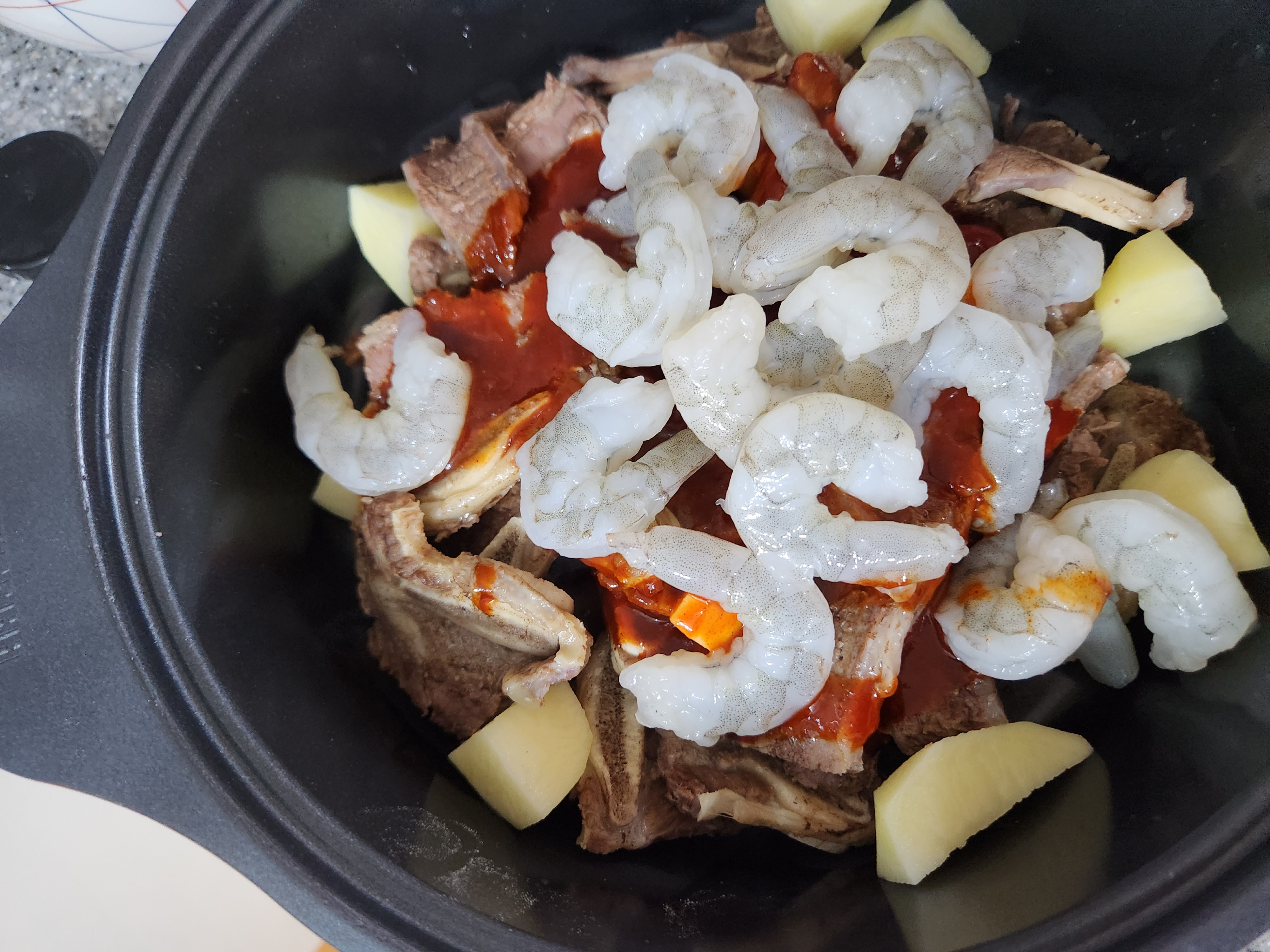 매운갈비양념을 부은 냄비에