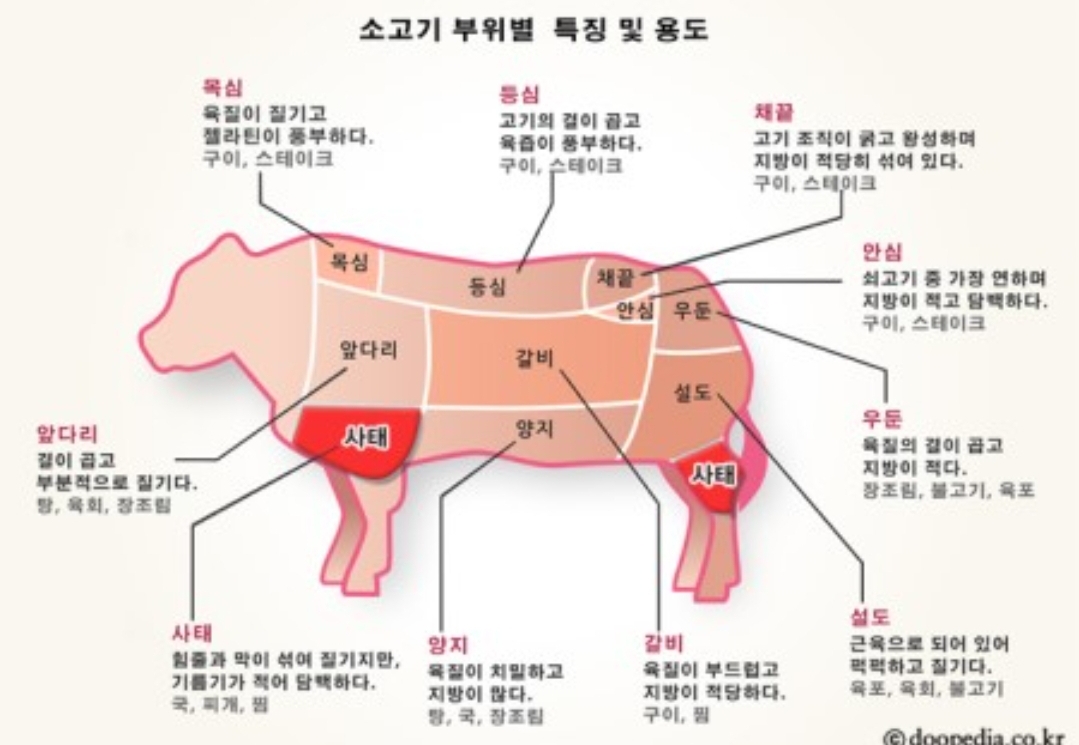 아롱사태는 소고기 부위 중 뒷사태에서 뭉치사태 가운데에