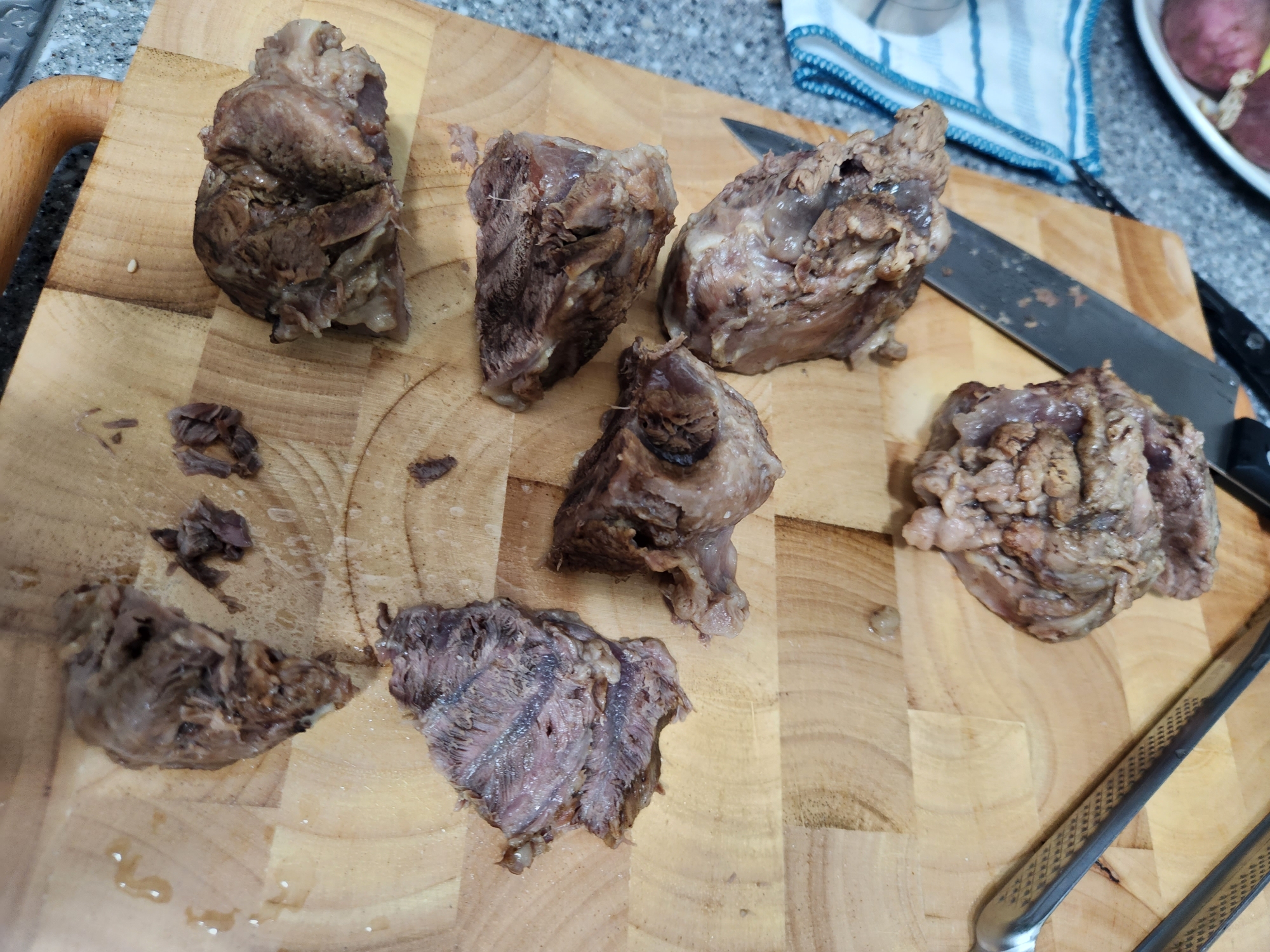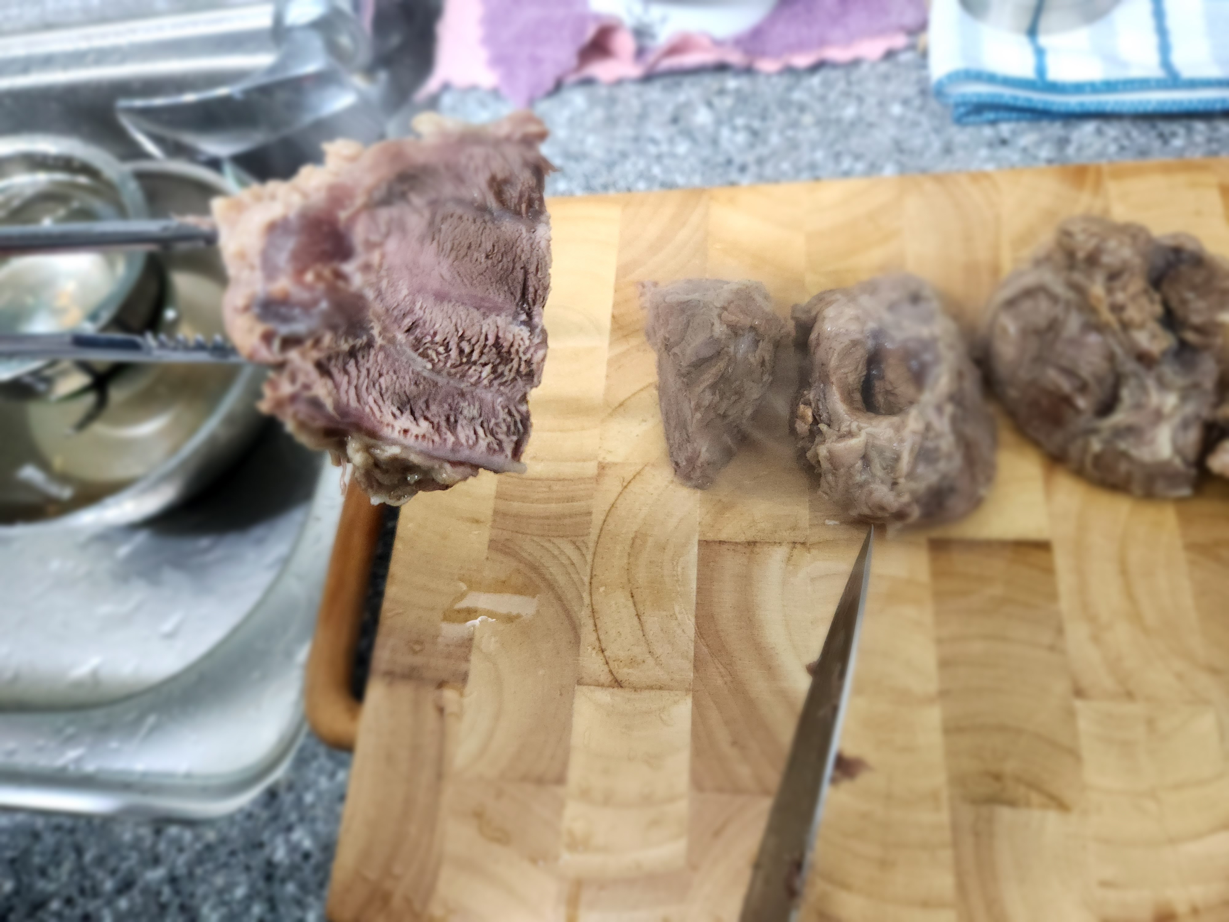 시간이 지나고 핏기가 빠진 아롱사태입니다.