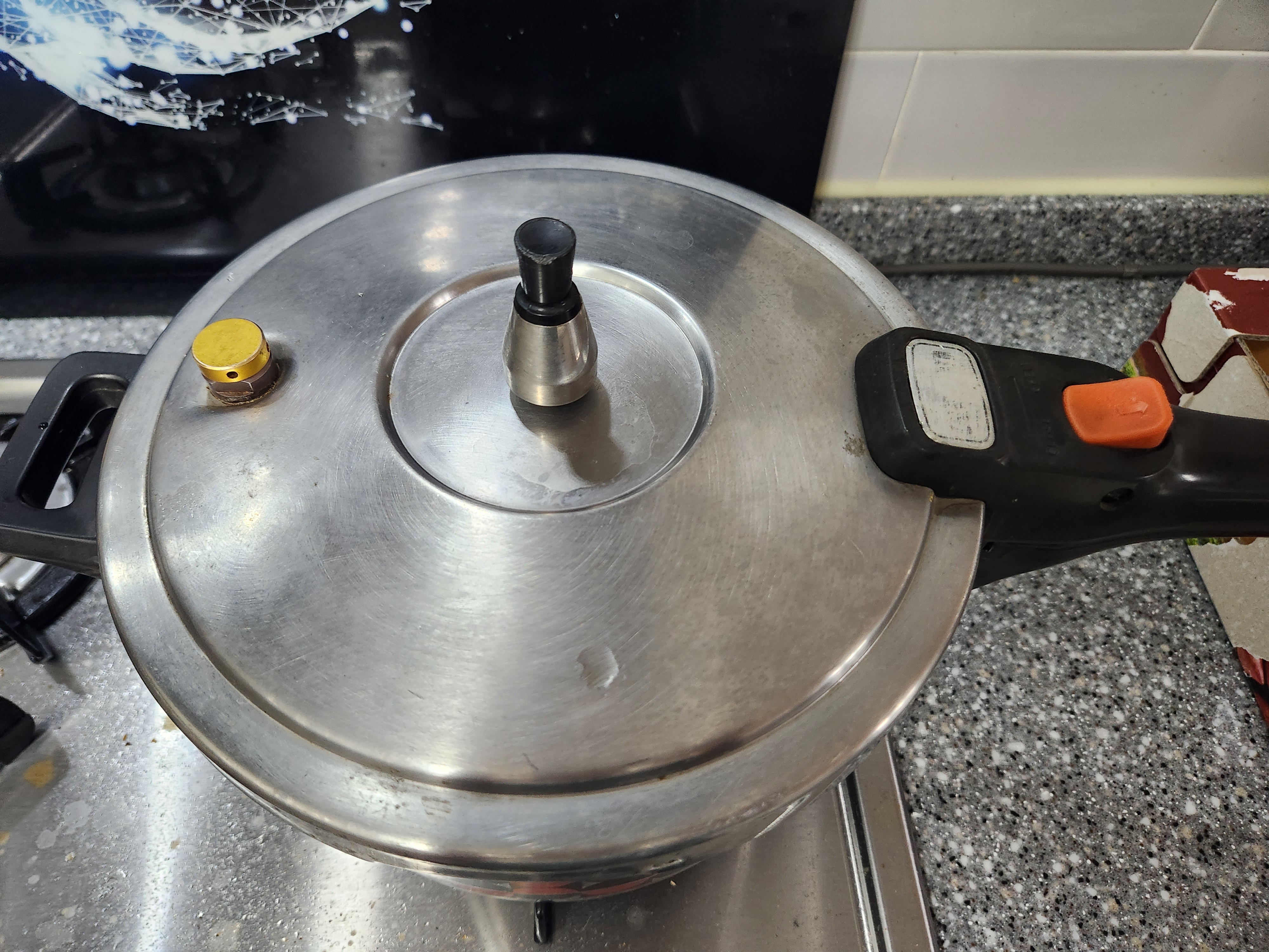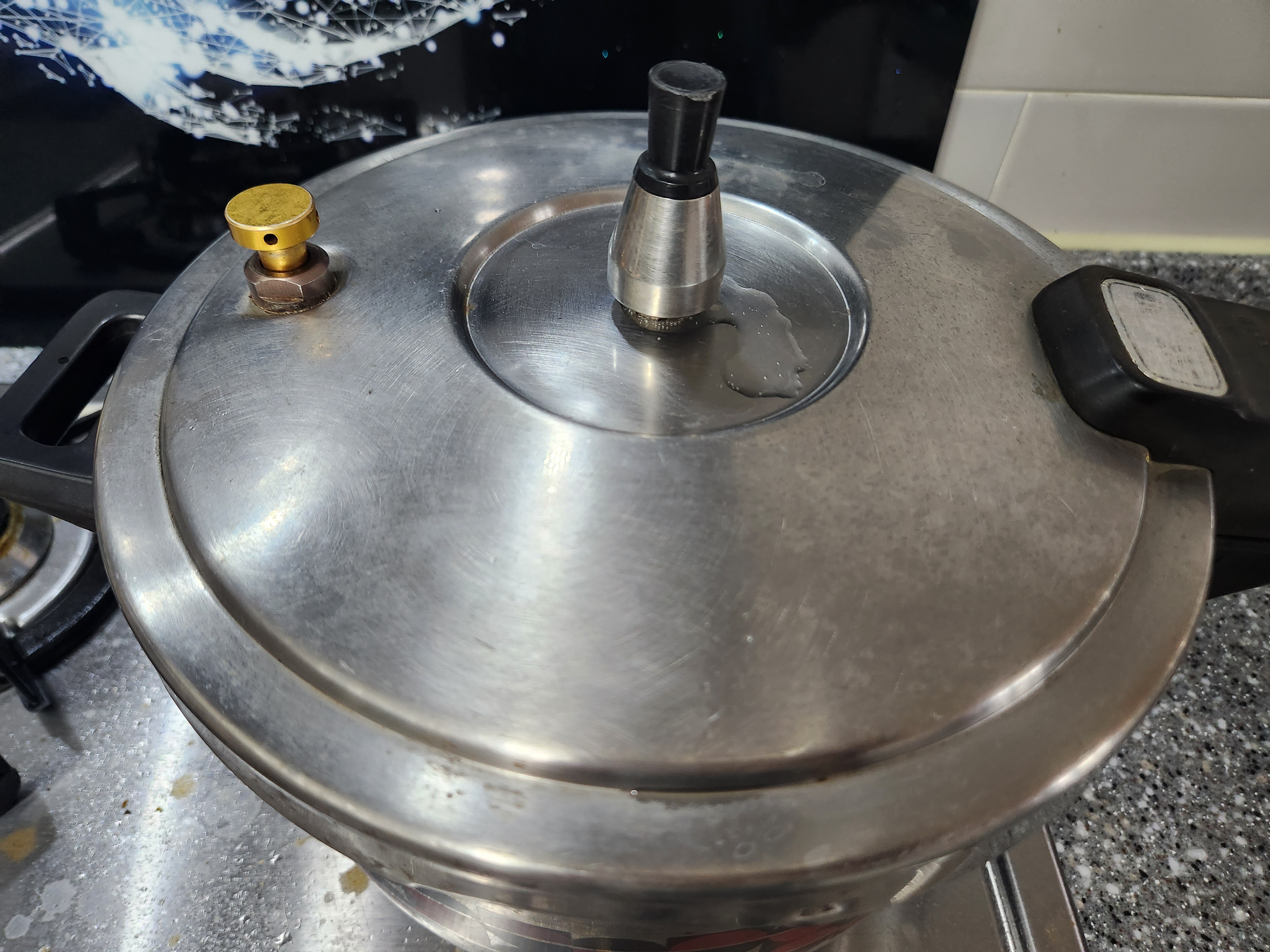 이제 압력밥솥에 뚜껑을 닫고 센 불로 끓여줍니다.