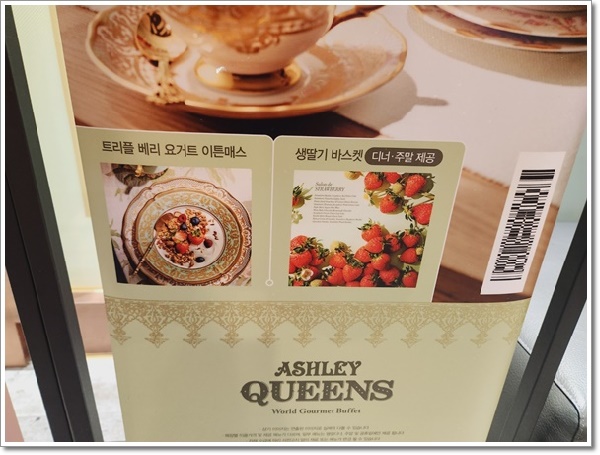 3월 초에 애슐리 퀸즈 송도트리플스트리트점에 다녀왔었습니다. 애슐리 퀸즈 송도트리플스트리트점은 공간도 넓고 깨끗하고, 먹거리도 정말 다양하고 많아서 3대가 모두 만족했던 시간이었습니다. 제가 갔을 때 딸기축제가 한창이었습니다. 애슐리 퀸즈 딸기축제는 2월 1일부터 제공되었었는데요, 듣기로는 3월 중순에서 4월 초정도까지 제공 예정이라고 합니다. 딸기축제 마감 시기는 매장마다 다르다고 하니, 애슐리 퀸즈 방문하시기 전에 먼저 해당 매장에 딸기축제를 하는지 여부 확인하시고 예약 및 방문하시는 게 좋을 것 같습니다.