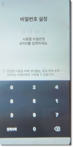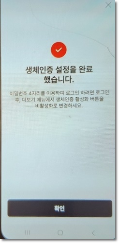 생체정보 등록하기 ⇨ 지문 등록(화면에 엄지손가락을 살포시 댑니다)