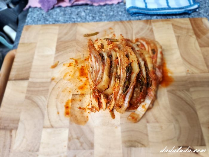 먼저 김치를 먹기 좋은 크기로 잘라줍니다.