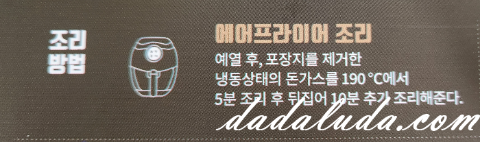 인천 운서동 밀키트 무인매장 담꾹 운서역점 돈가스는 에어프라이어로 15분만 조리하면 끝입니다.