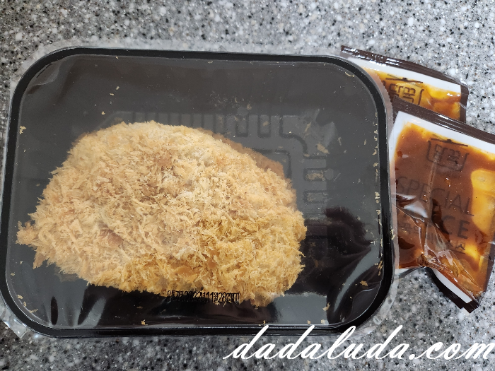 포장을 열면 소스 2개와 돈가스 2개가 들어있어요.