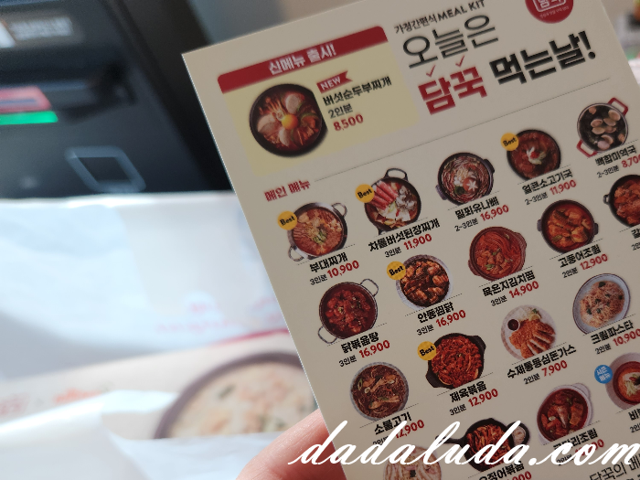 밀키트 종류는 아래 메뉴판 봐주세요.