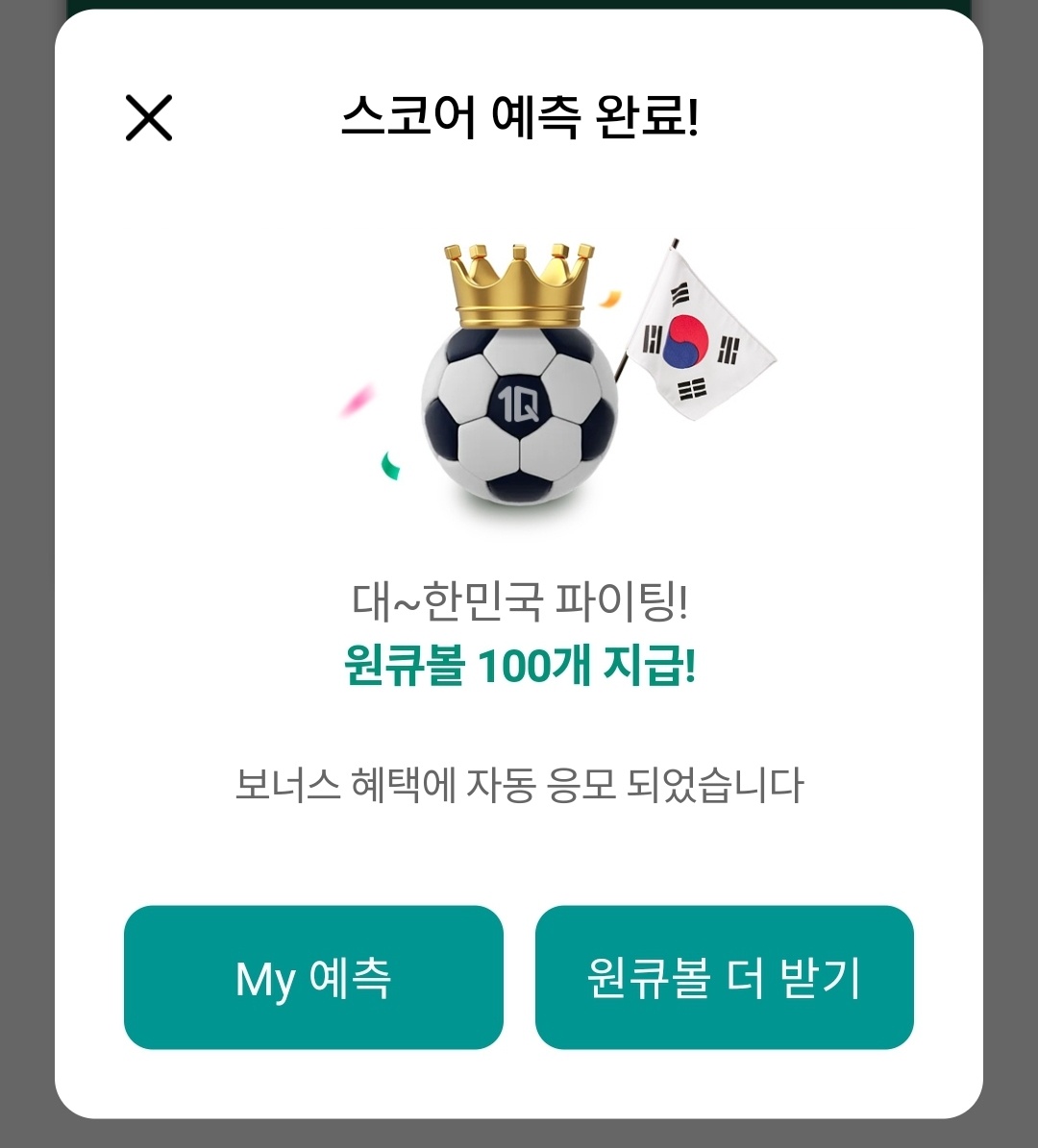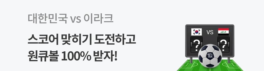 이벤트1> 대한민국 이라크 경기 스코어 예측하면 누구나 원큐볼 100개