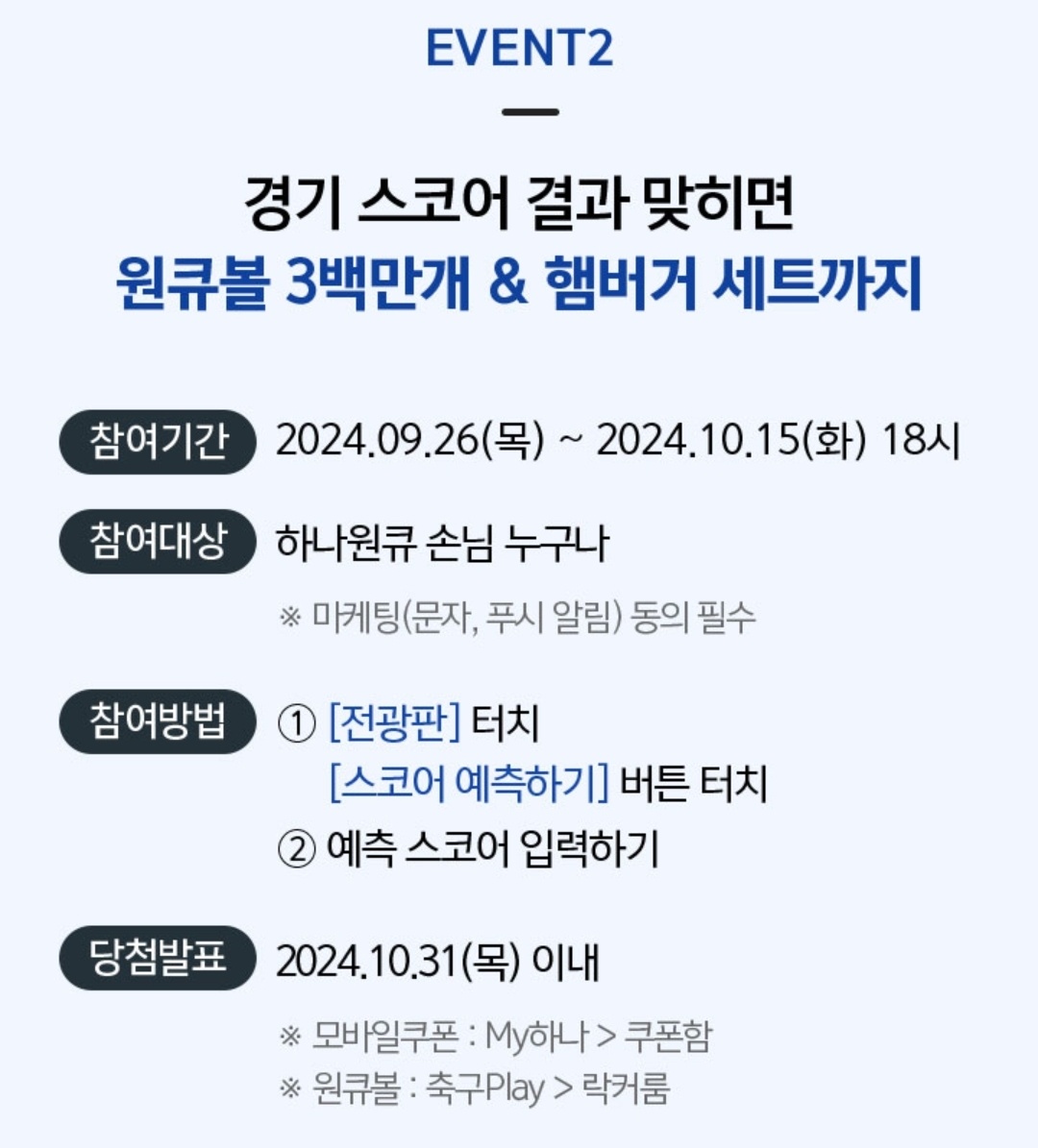 📌 스코어 맞히기 응모하세요! 스코어는 경기당일 18시까지 수정할 수 있습니다!
