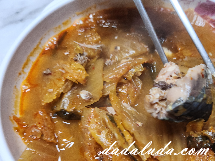 김치가 푹 익을 때까지 끓여줬습니다. 깊은 맛이 나지 않는다 싶으면...김치국물을 더 넣어주거나... 음.... 마법의 가루를.... 뿌리면 뭐 어떻습니까 ^^ 그래도 고등어통조림이 있으니 웬만하면 맛있습니다. 다 끓인 후에는 널찍한 대접에 옮겨줍니다.