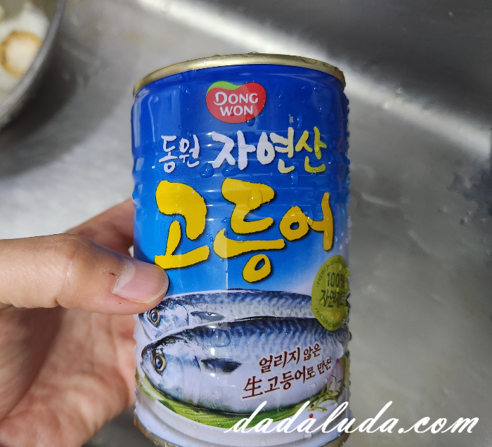 제가 실수로 잘못 사온 동원 자연산 고등어통조림입니다 ^^;; 고등어라고 크게 쓰여있는데... 왜 못 봤을까요.... 암튼... 그래도 사 왔으니 먹어는 봐야죠~ 꽁치통조림 김치찌개와 같은 방식으로 고등어통조림 김치찌개를 끓일 겁니다. 뚜껑을 열어봤는데... 다행히 비린내는 없었고, 고소한 생선향이 났습니다. 다행이다 싶었습니다.