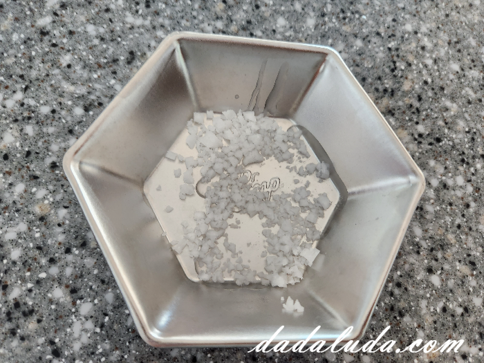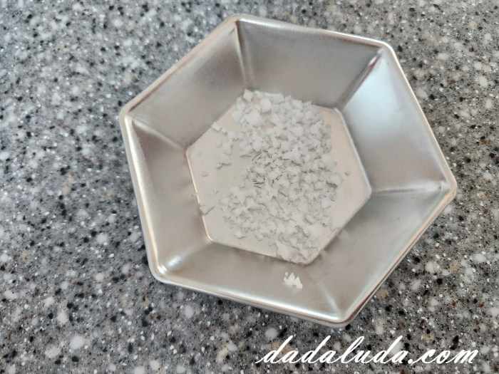 먼저 샴푸와 소금을 준비합니다. 작은 그릇 등등 아무곳에나 소금을 담아줍니다. 저는 집에 있던 굵은소금으로 준비했습니다. 양은 티스푼 한 숟가락 정도로 했습니다. 정량이 필요한 게 아니니, 대략적인 소금 양을 준비하시면 되겠습니다.