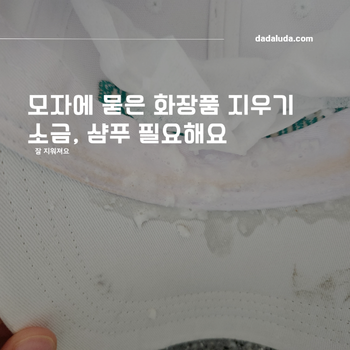 모자에 묻은 화장품으로 인해 고민이셨던 분들! 이제 좀 깨끗해졌나요? 모자에 묻은 화장품 지우기 어렵지 않습니다. 더럽다고 버리지 말고, 화장품을 지워주세요. 새 모자가 됩니다!