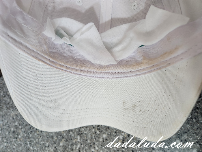 얼굴에 파운데이션 등등 화장을 하고나서 모자를 쓰면 이마라인으로 화장품이 묻습니다. 처음엔 그냥 놔뒀는데, 모자를 계속 쓰다 보니 점점 진해지는 것 같더라고요 ^^;; 보기에도 안 좋고, 청결하지도 않으니 모자에 묻은 화장품 지우기를 해야겠습니다.