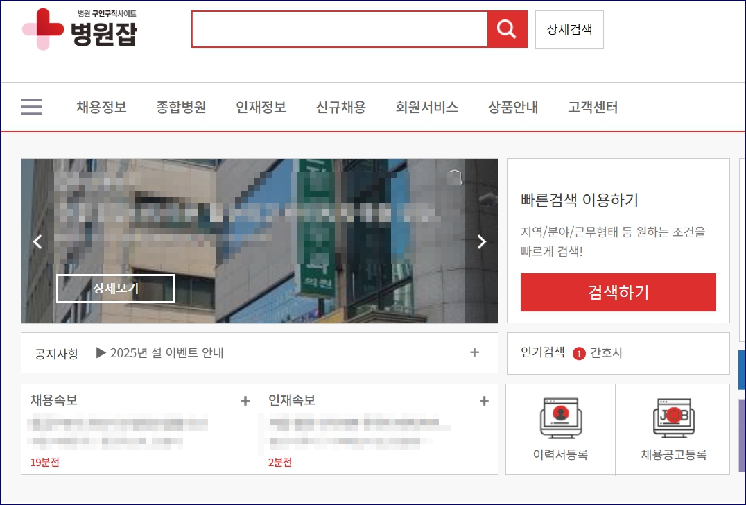 - 병원, 요양시설, 복지시설 등 다양한 채용 공고가 올라옵니다.
