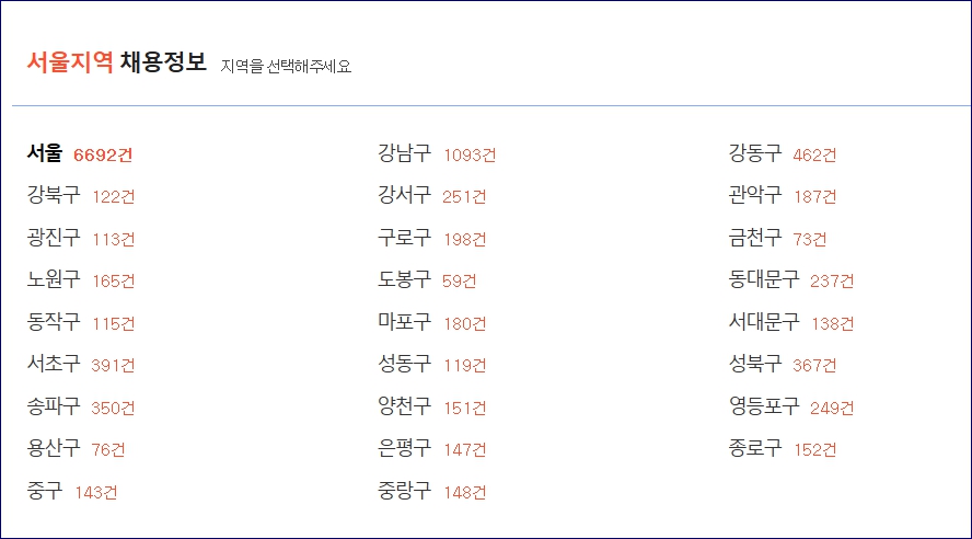 서울, 인천, 경기도 등 지역별로 채용정보를 찾아볼 수 있습니다.