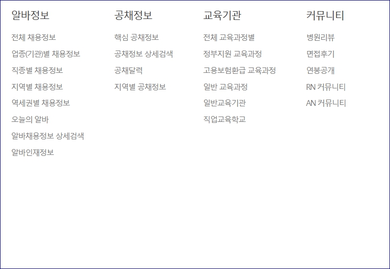 - 지역별, 경력별, 근무 조건별로 세분화된 검색 기능을 제공합니다.