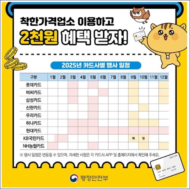각 카드사별로 2천원 혜택 행사 일정이 다릅니다. 자세한 사항은 각 카드사 홈페이지에서 확인해주세요.