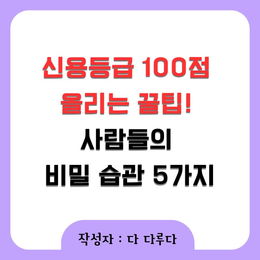신용등급 100점 올리는 꿀팁! 사람들의 비밀 습관 5가지