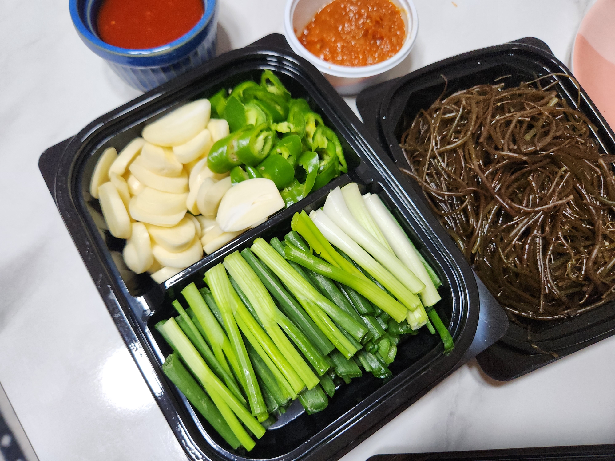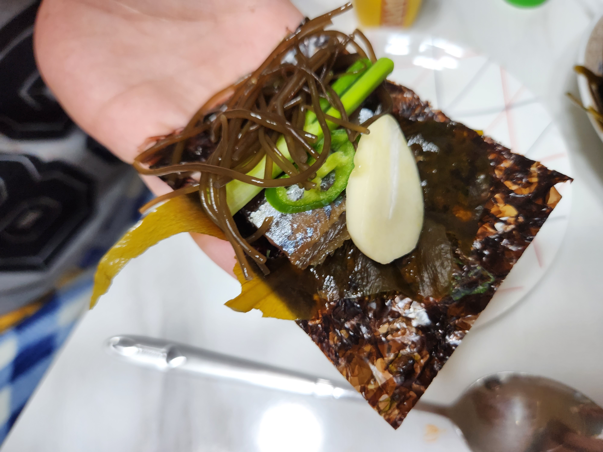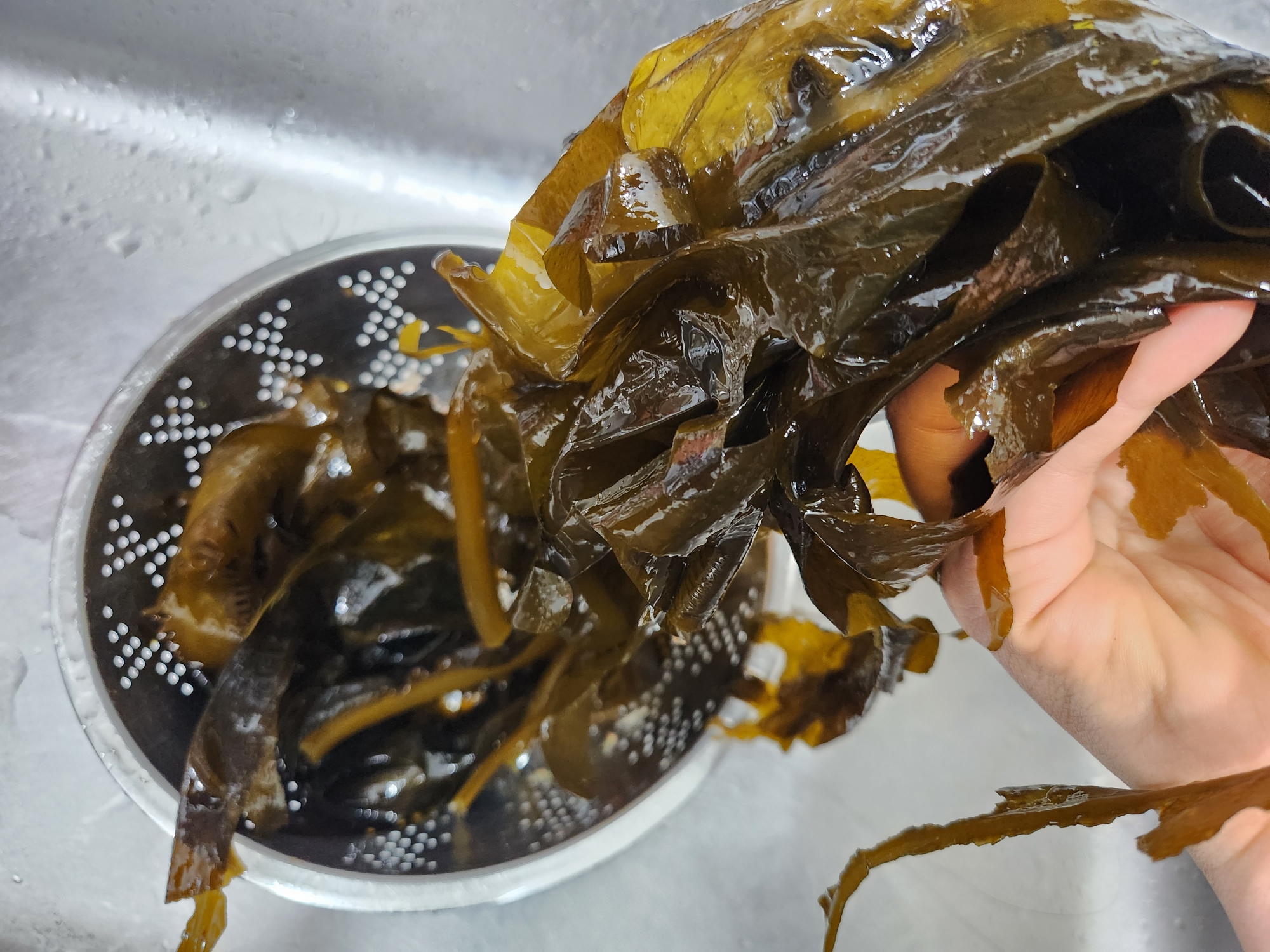 미역도 바로 따서 온거라서 그런지 엄청 깁니다. 이런 생미역은 처음 봤답니다. 깨끗하게 세척 후, 먹기 좋은 크기로 잘라줍니다. 양도 꽤나 많아서 다 먹지 못했습니다. 남은 미역은 다음에 데쳐서 초장에 찍어먹어도 좋을 것 같습니다.