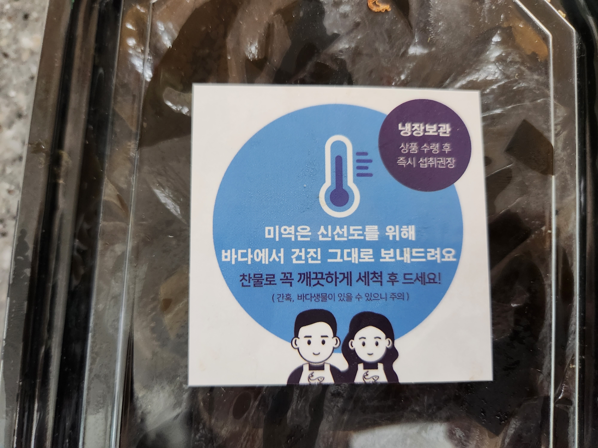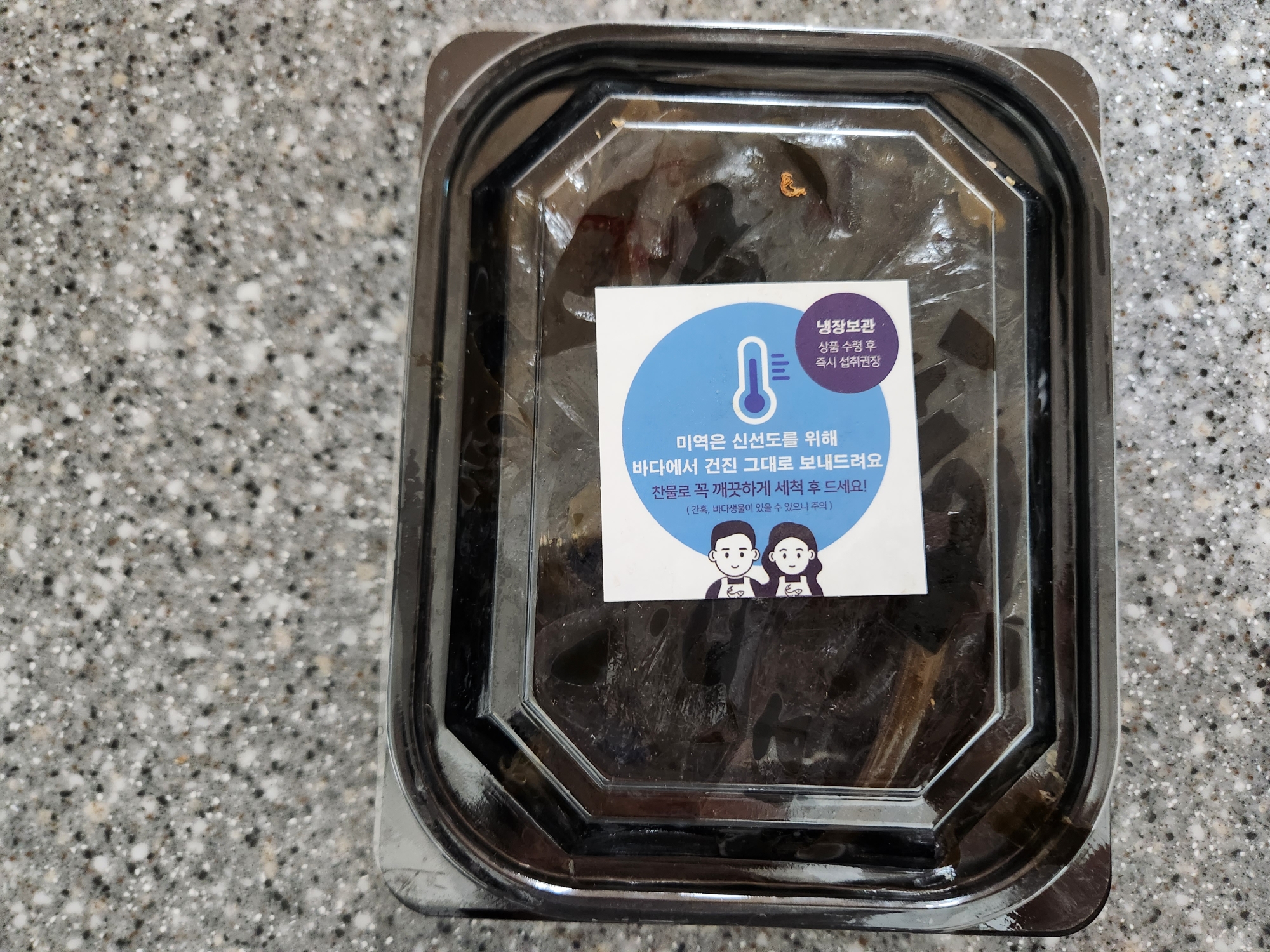 바다에서 바로 건진 미역입니다. 광고에서 봤을 땐 미역이 초록색이었습니다. 제가 받은 미역은 왜 갈색일까요? 그래서 알아봤습니다. 바다에서 바로 건진 미역은 갈색입니다. 바로 생미역인 것입니다. 광고지에도 안내가 되어 있기는 하지만, 미역은 씻게 되면 빨리 무르게 된다고 합니다. 그래서 하모니에서는 신선도를 위해 바다에서 바로 건진 미역을 보내준다고 합니다. 꼭 찬물로 씻어서 먹어야 합니다. 그렇다면 초록색 미역은 무엇일까요? 바로 이 갈색 미역을 데친 것이라고 합니다. 미역을 데치면 초록색으로 변한답니다. 혹시 갈색 미역이 싫으시다면 한번 살짝 데쳐서 먹는 것도 좋을 것 같습니다.