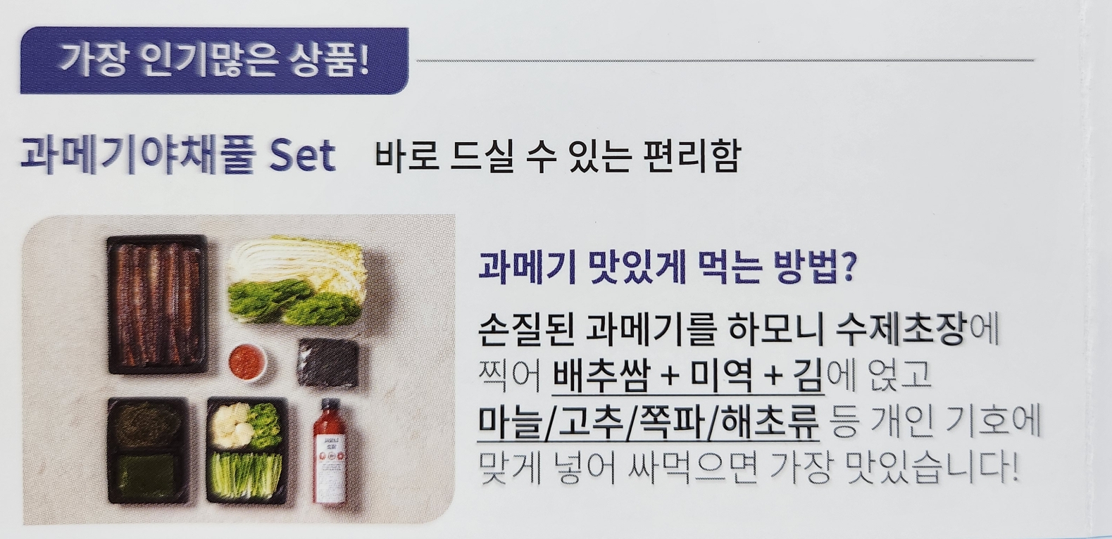 하모니에서 가장 인기가 많은 상품은 하모니 과메기 야채세트라고 합니다. 하모니에서는 과메기 세트만 판매하는 게 아니랍니다. 지금이 제철로 제철일 때 꼭 먹어봐야 하는 게 과메기입니다. 지금 바로 먹어보겠습니다!