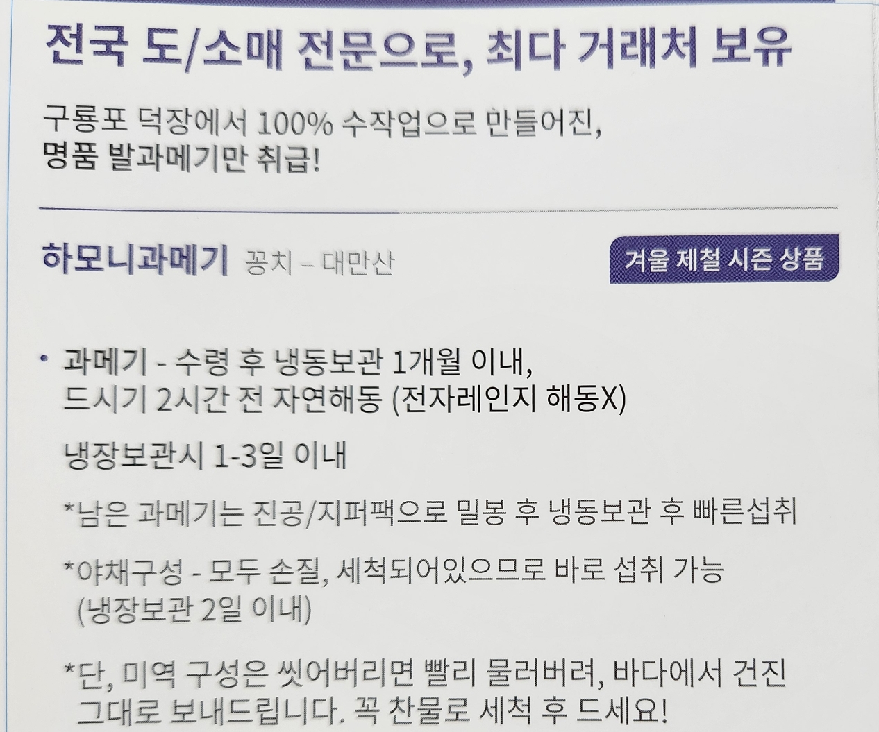 하모니 과메기 야채세트 포항 택배로 받아서 먹었습니다. 원래도 과메기는 포항 과메기가 유명했던 것 같습니다. 하모니 과메기는 구룡포 덕장에서 오로지 수작업으로 만든 발과메기만 취급한다고 합니다.