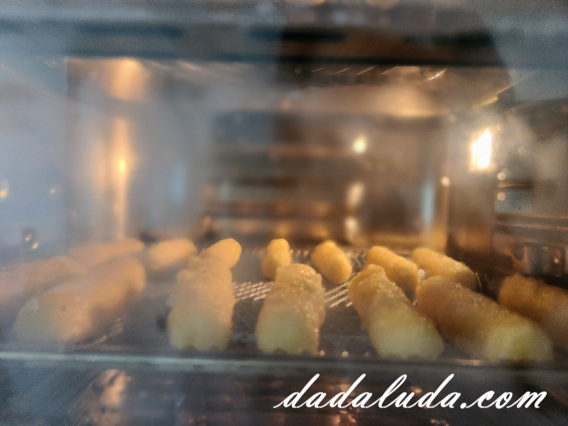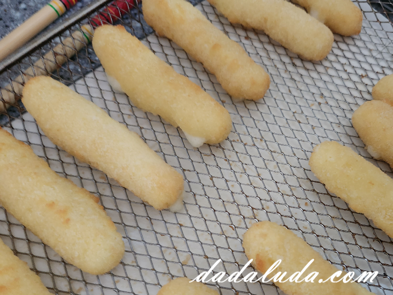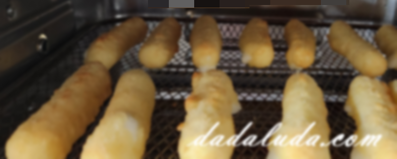 에어프라이어로 구운 치즈스틱을 만져보면 말랑말랑합니다.
